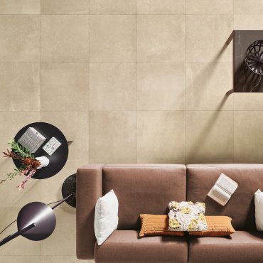 Nuance calde e un effetto cemento che crea design accattivanti e moderni, con decori e mosaici.