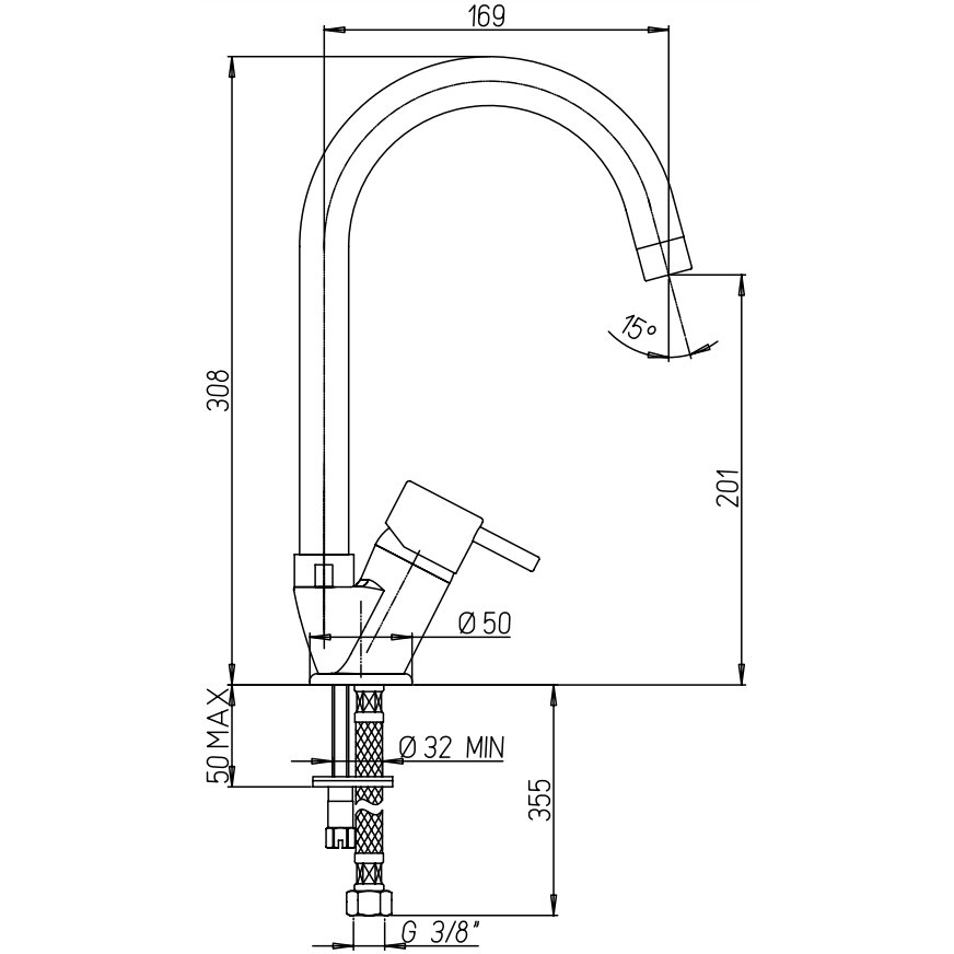 PAINI COX MISCELATORE MONOCOMANDO LAVELLO CON BOCCA TUBO ORIENTABILE