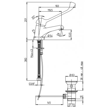 PAINI CRETA 100 MISCELATORE MONOFORO LAVABO CON LEVA CLINICA, SCARICO AUTOMATICO cromo cromato 42CR211L