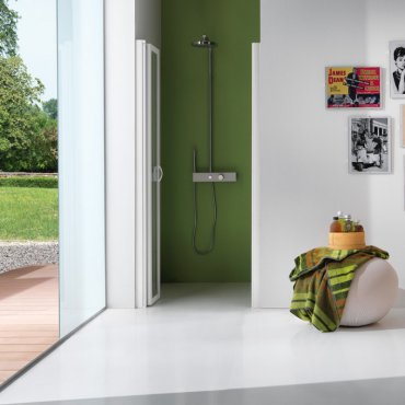 Flex è l'ulteriore serie di box doccia che grazie alle sue particolari caratteristiche permette di arredare anche il bagno più piccolo o più “difficile”. Flex è infatti sprovvisto di profili fissi sia inferiori che superiori, quindi è perfetto per essere installato vicino ad una finestra, per cui una volta ripiegato su se stesso scompare completamente e non crea intralcio.
