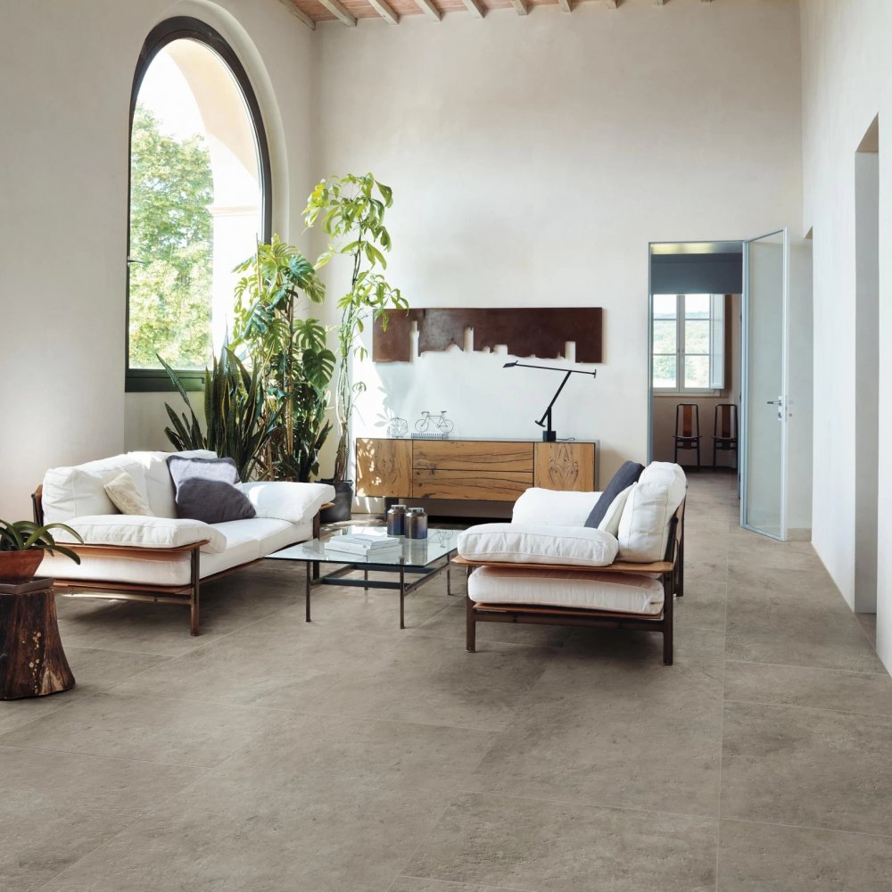 Aix è una collezione effetto pietra di Atlas Concorde che richiama alla memoria la pavimentazione originale di una villa del Settecento.