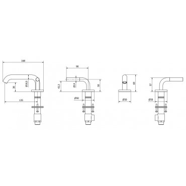 IB RUBINETTERIE INDUSTRIA BATTERIA LAVABO TRE FORI A BOCCA BASSA CROMO