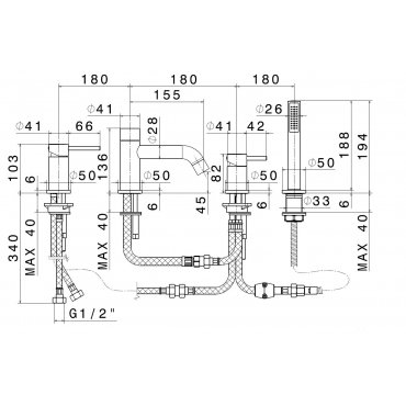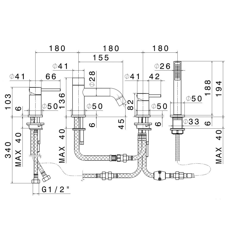 NEWFORM XT GRUPPO BORDO VASCA CON DEVIATORE, BOCCA E KIT DOCCIA CROMO