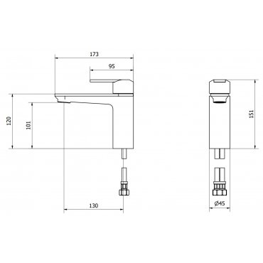Miscelatore lavabo monoforo senza scarico automatico.