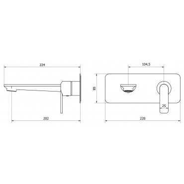 Miscelatore lavabo due fori a parete senza scarico automatico.