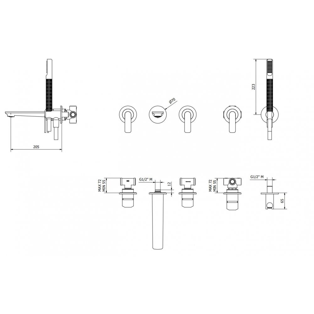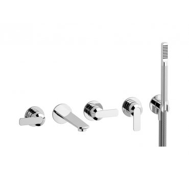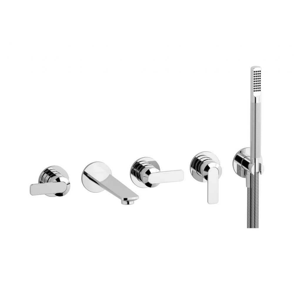 Bordo vasca a parete cinque fori con deviatore e kit doccia.