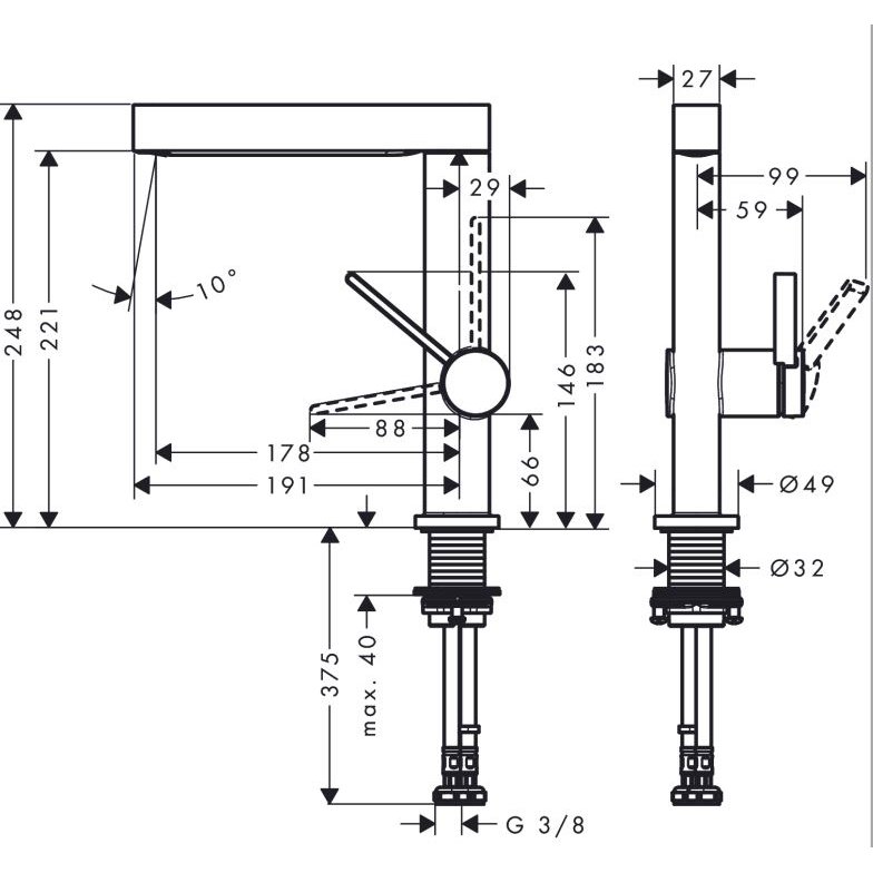 composto da: miscelatore monocomando lavabo, set