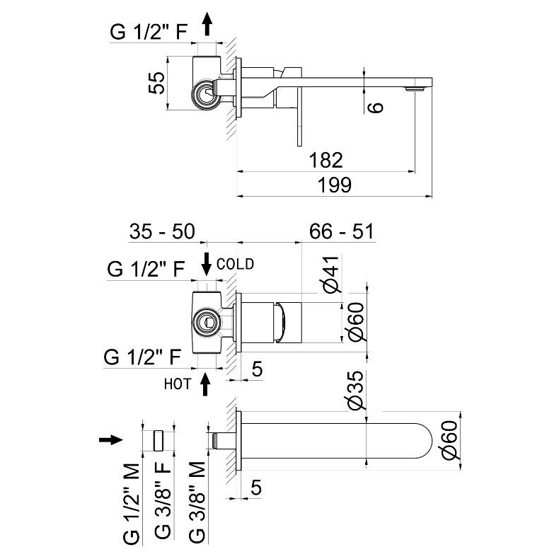 VEMA RUBINETTERIE AYAS STEEL MISCELATORE LAVABO A PARETE SENZA SCARICO ACCIAIO INOX