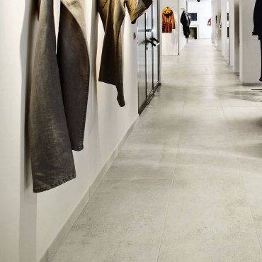 UPtown collezione della Dom è la fusione tra la qualità della ceramica e l'essenzialità del cemento. Gres porcellnato con impasto colorato ad effetto cemento è proposto in tre superfici: naturale, naturale con bordo rettificato e lappato.