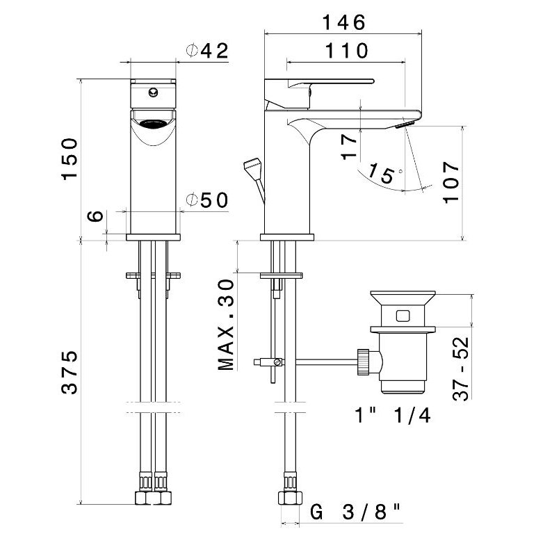 Miscelatore monocomando per lavabo con scarico da 1”1/4.