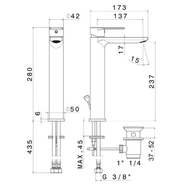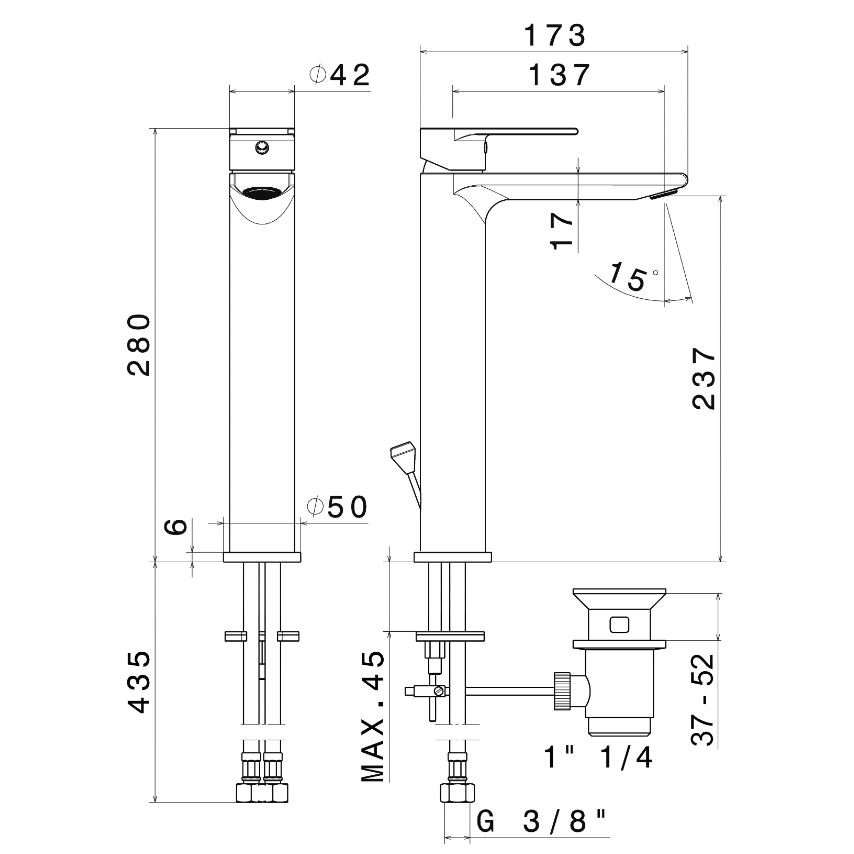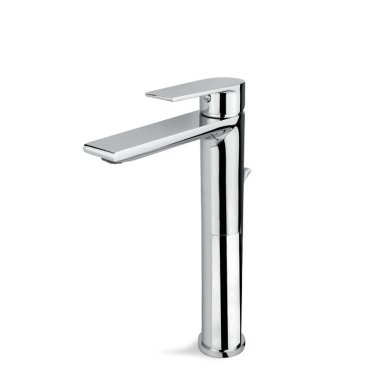 Miscelatore monocomando versione alta per lavabo da appoggio, con scarico da 1”1/4.
