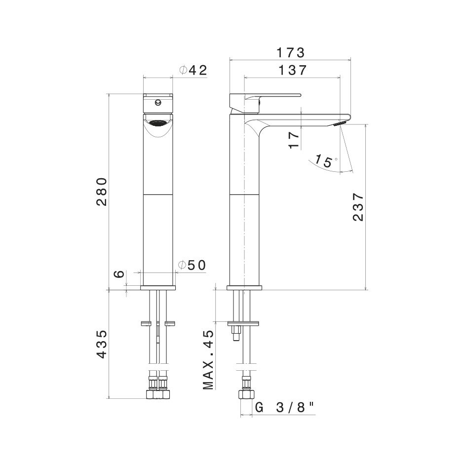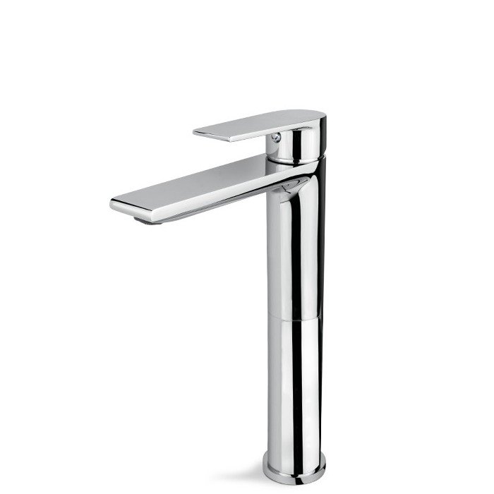 Miscelatore monocomando versione alta per lavabo da appoggio, senza scarico.