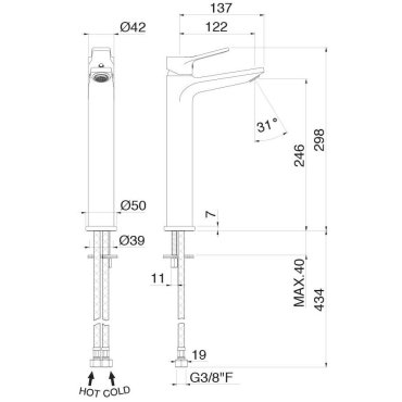 VEMA RUBINETTERIE PARANÀ MISCELATORE LAVABO ALTO SENZA SCARICO CROMO