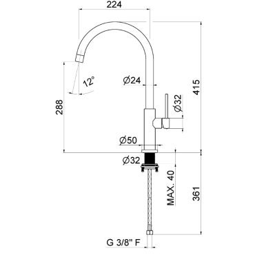 Miscelatore monocomando per lavello con canna tonda girevole. Flessibili di alimentazione F 3/8”.