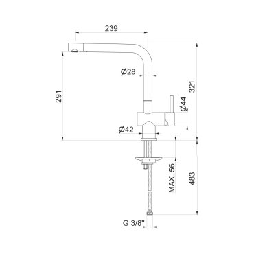 Miscelatore monocomando per lavello con canna “L” girevole. Flessibili di alimentazione F 3/8.