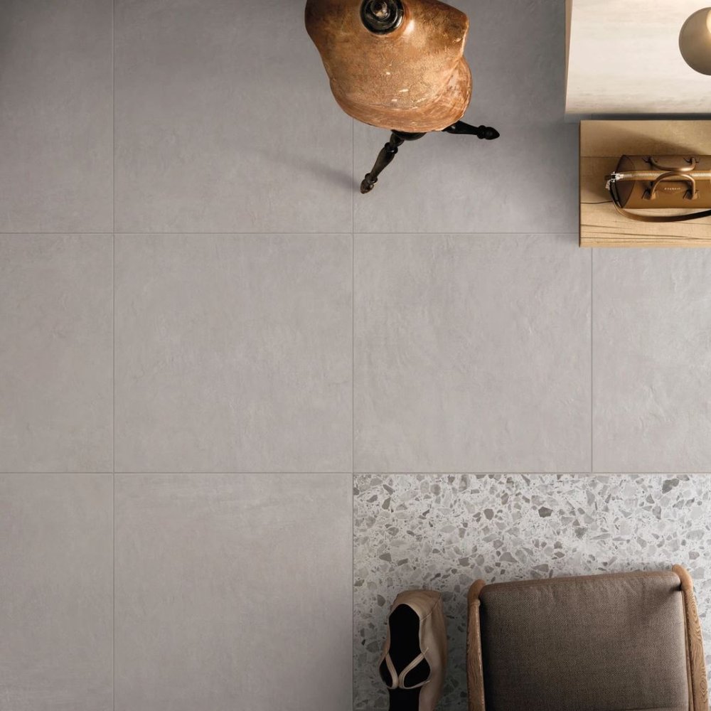 piastrella pavimento rivestimento gres porcellanato effetto cemento interno cucina living salotto camera da letto area commerciale naturale rettificato R10 9mm 0,90cm LOF03 riscaldamento a pavimento