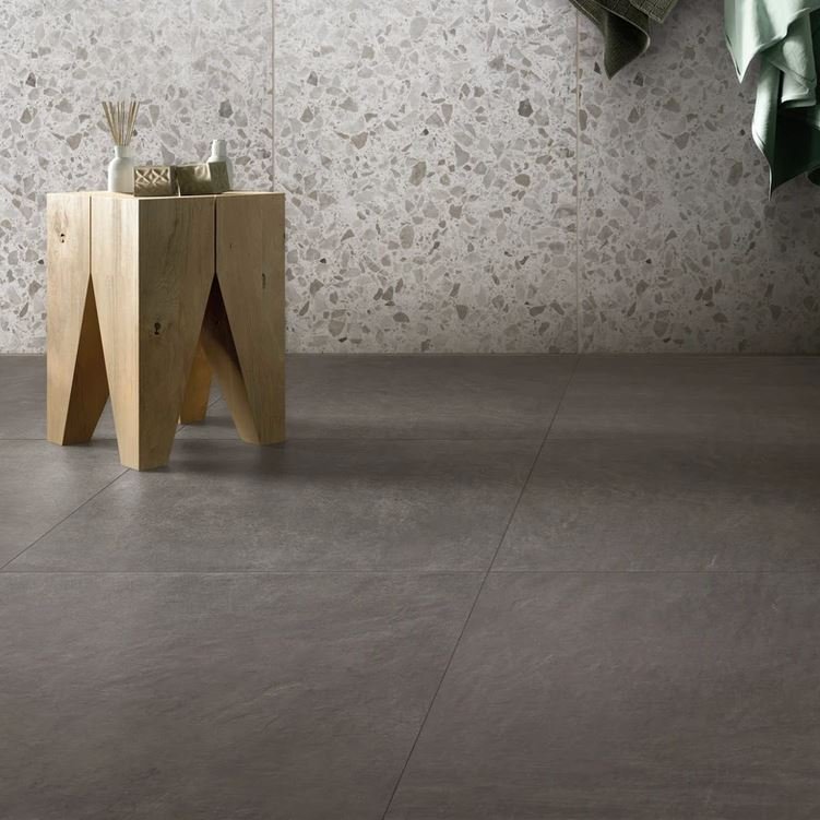 La serie Loft di ArpaCeramiche è una collezione di piastrelle in gres porcellanato rettificato con effetto cemento.