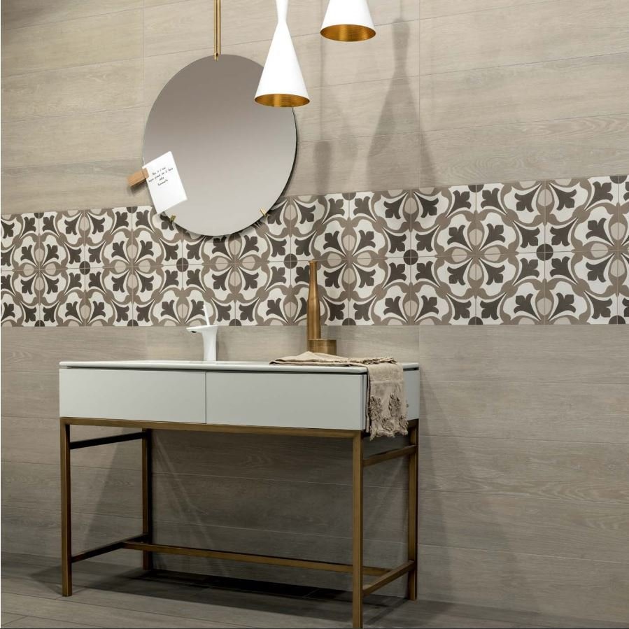 Comfort C di Dom Ceramiche è stata studiata per coordinarsi con tutte le collezioni del progetto Comfort. Gres porcellanato effetto Cementina ripropone decori dell'antica tradizione che possono essere singoli