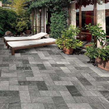 Pietra di Vals è disponibile in diversi formati e offre un aspetto naturale e una resistenza allo scivolamento R11 per garantire la sicurezza anche negli ambienti esterni.