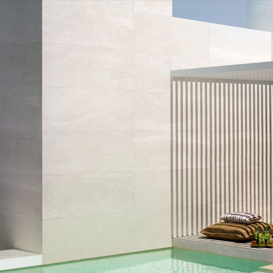 La pietra riprodotta in versione ceramica assume differenti aspetti in superficie a seconda della lavorazione effettuata: minimal, martellata e rullata.