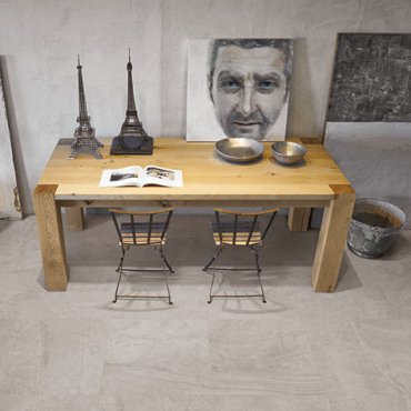 Serie in gres porcellanato effetto legno, cemento comprende 5 formati e 3 colori: sabbia, grigio, cenere.