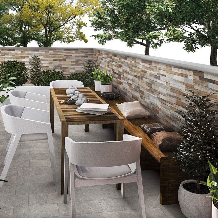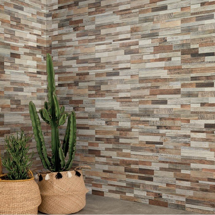 Inwood 3D, di Ceramica Rondine, è la collezione per rivestimenti improntata su uno stile dinamico, tridimensionale. Questo gres porcellanato effetto legno vanta di un effetto fuori dal comune in grado di abbellire e rendere ultra moderno e particolare qualsiasi ambiente. Particolarmente adatta a living, soggiorni, questa collezione si presenta nel formato 15x61 e tre variazioni cromatiche: Beige, Multicolor e Black.