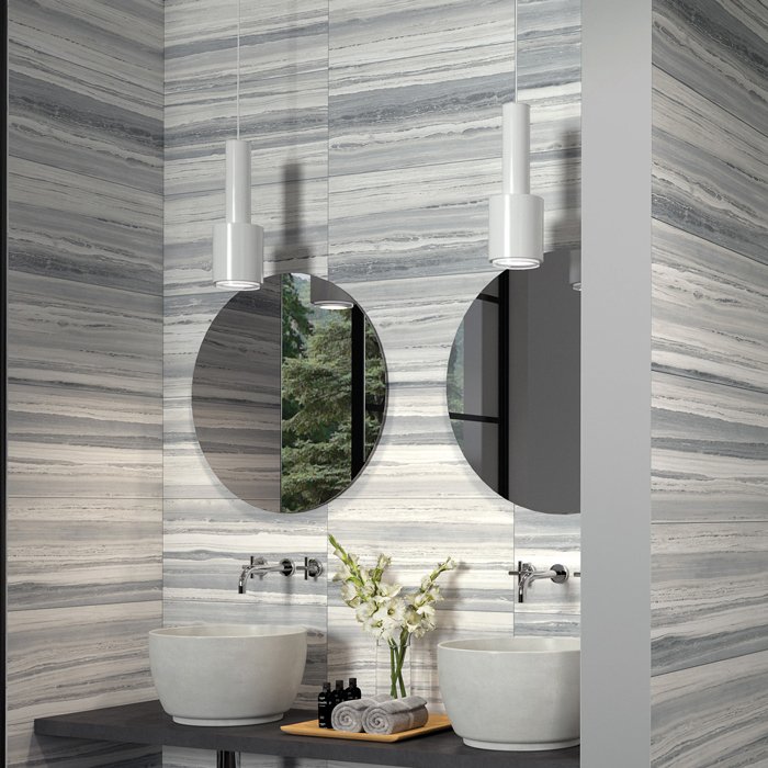 Palissandro, il gres porcellanato effetto marmo di Ceramica Rondine, riproduce in maniera dettagliata le venature e le variazioni cromatiche del marmo. Per realizzare il Marmo Palissandro in tutte le sue sfaccettature, la collezione presenta cinque diverse variazioni cromatiche: Azur, Dark, Light Grey, Natural e Light. Questa collezione offre una vasta scelta di formati 30.5x60.5, 30x60, 60x120 e 30x120 in versione lappata e naturale per arredare ambienti lussuosi e accoglienti.